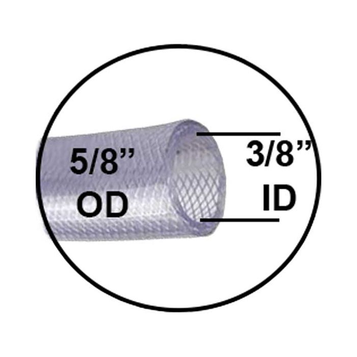 3/8” (9.5mm) Internal Diameter x 5/8" (15.5mm) Outside Diameter Food Grade String Reinforced (Braided) PVC Hose.