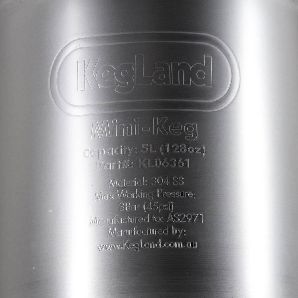 The Kegland Mini Kegs are pressure rated to 45PSI (this is stamped on the keg). Most other Mini Kegs we have seen have no pressure markings or manufacturing standards printed on them.