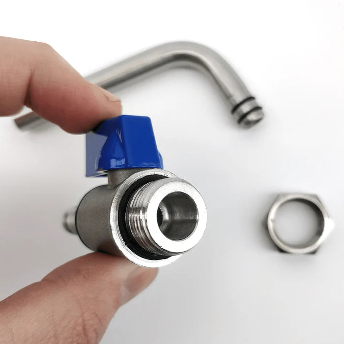 Replacement 3/8 inch ball valve and racking arm for the Brew Bucket and Brewmaster Bucket. Brewers grade 304 stainless construction. Comes with an external o-ring that seals between the valve and bucket along with an internal o-ring (inside the ball valve) for connecting the racking arm.