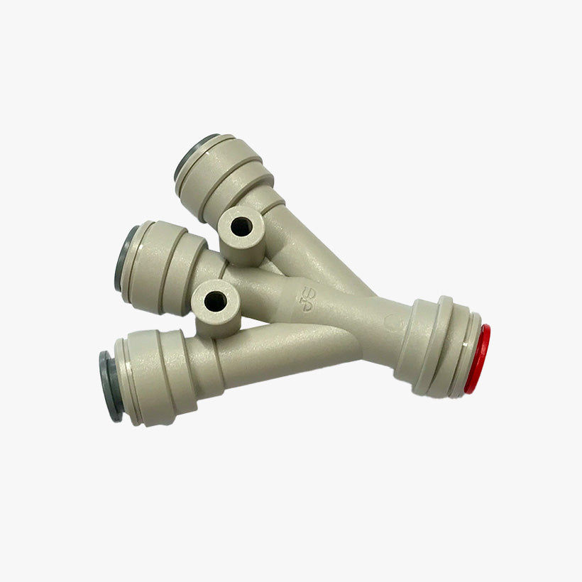 Splits 3/8” line 3 ways. A cheap and easy way to supply 3 kegs from one regulator.