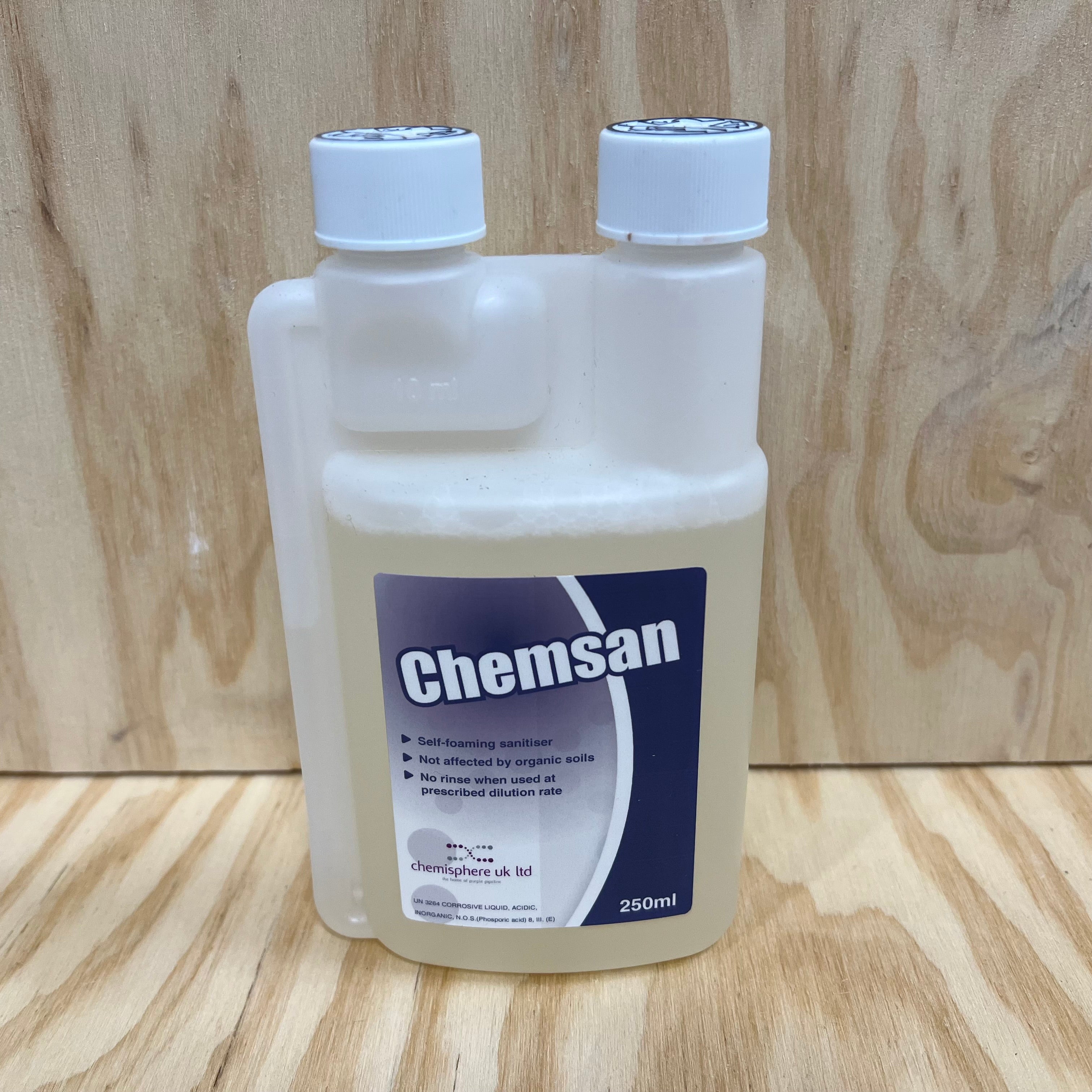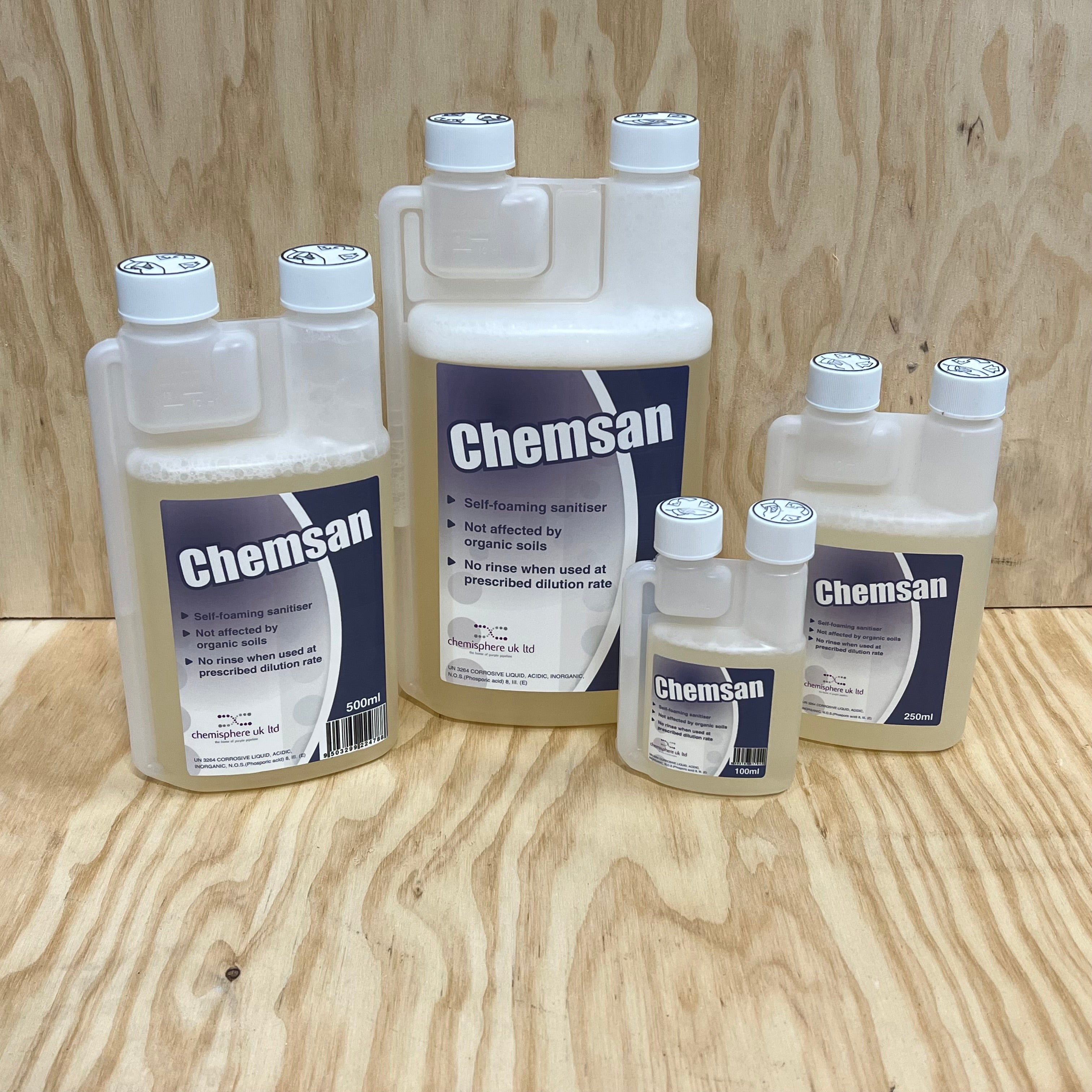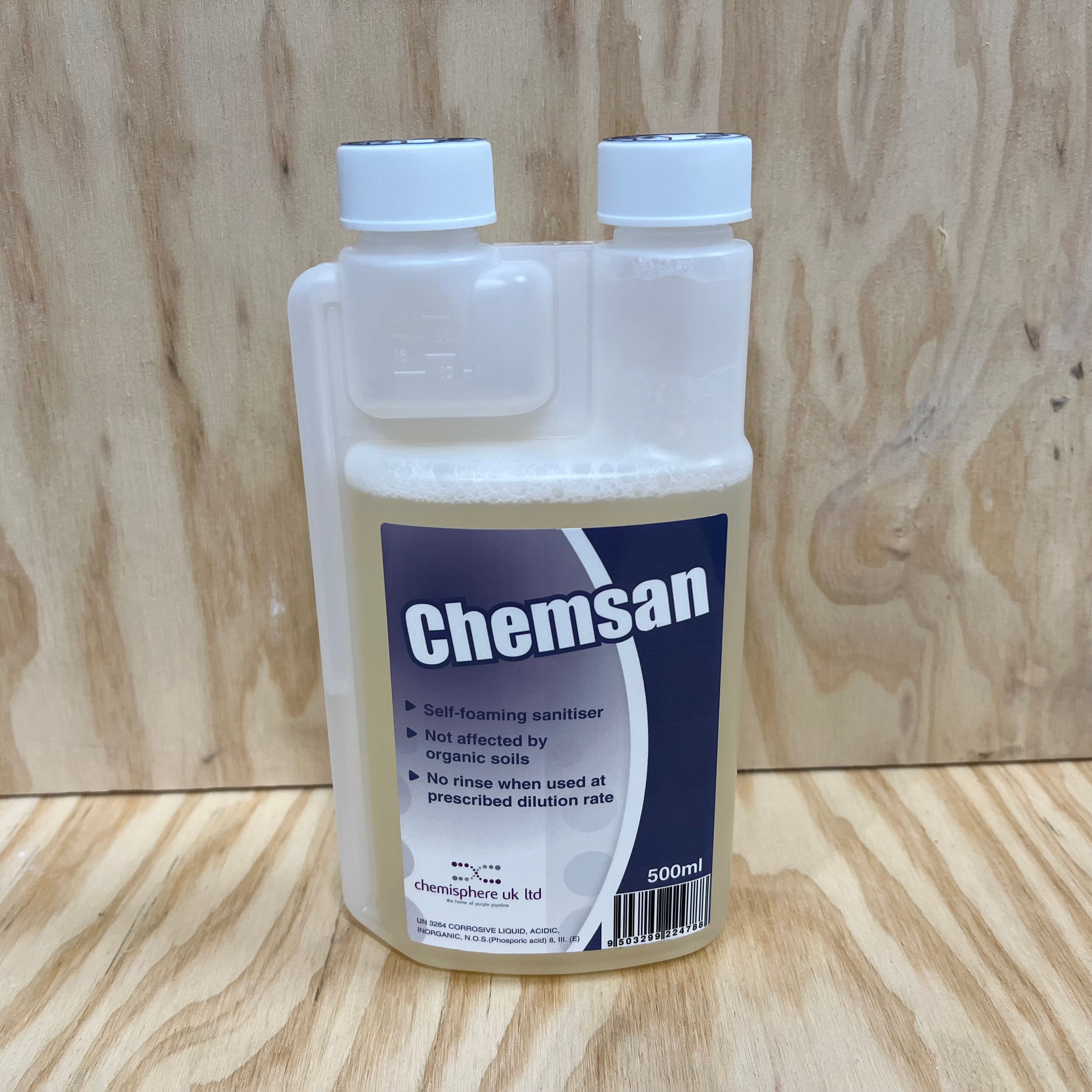 This is a great product that can be used at all stages of brewing and kegging. Make sure your equipment is clean (using a cleaner - we recommend ChemClean) then sanitise using this product. No rinse of Chemsan needed - don't fear the foam!