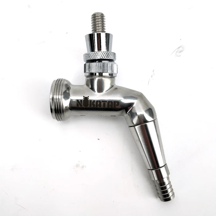 Convert your NukaTap Tap into a barbed fitting to attach your silicone filling hose pre attached without opening the Kegerator Door.