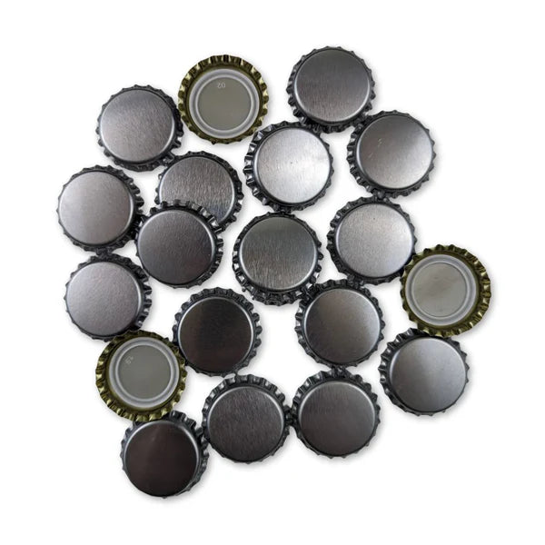 Handcraft Supplies Silver Crown Caps for use with glass crown cap bottles, to provide a secure seal for beer and cider.