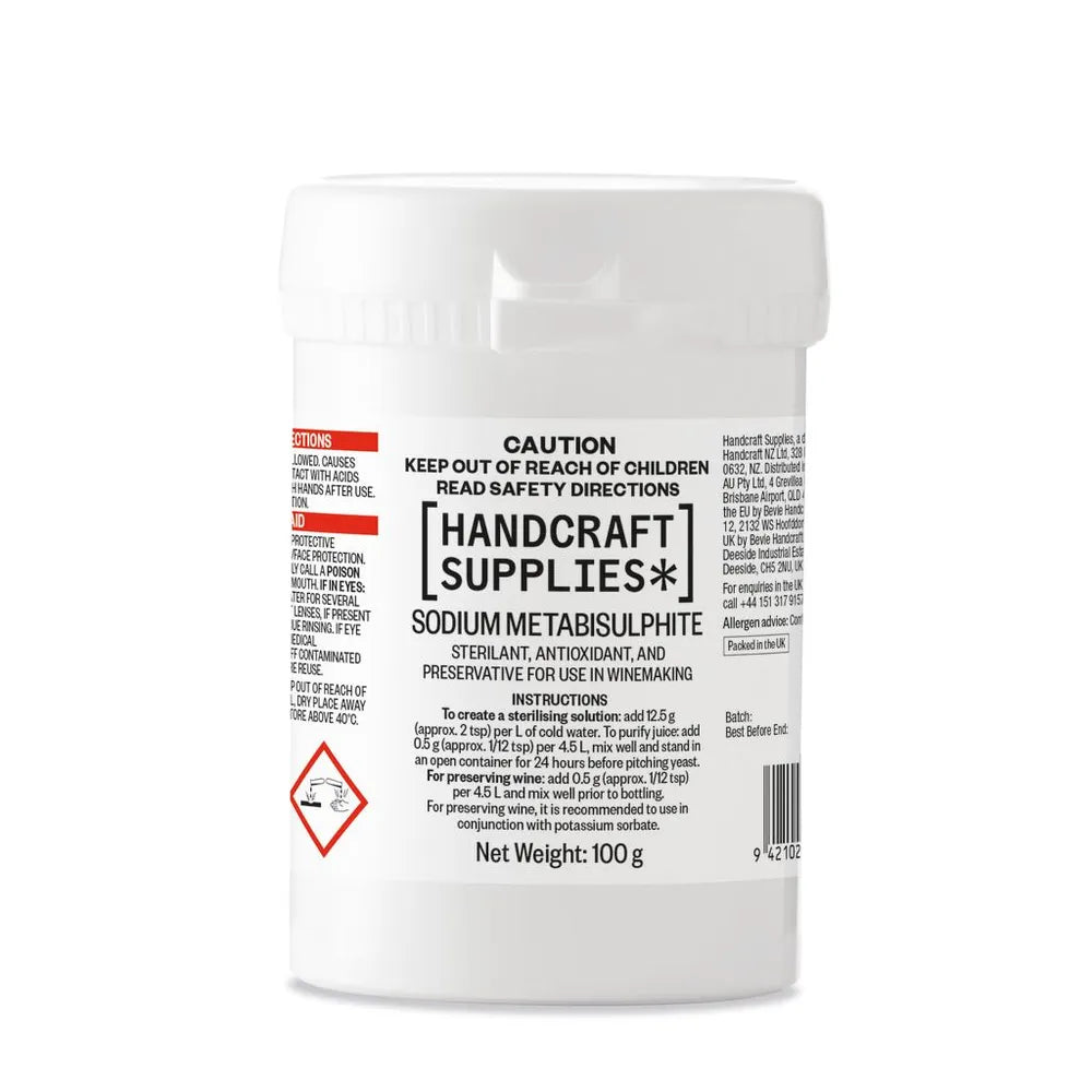 Handcraft Supplies Sodium Metabisulphite can be used in winemaking to create a sterilising solution, to purify juice, or to preserve wine.