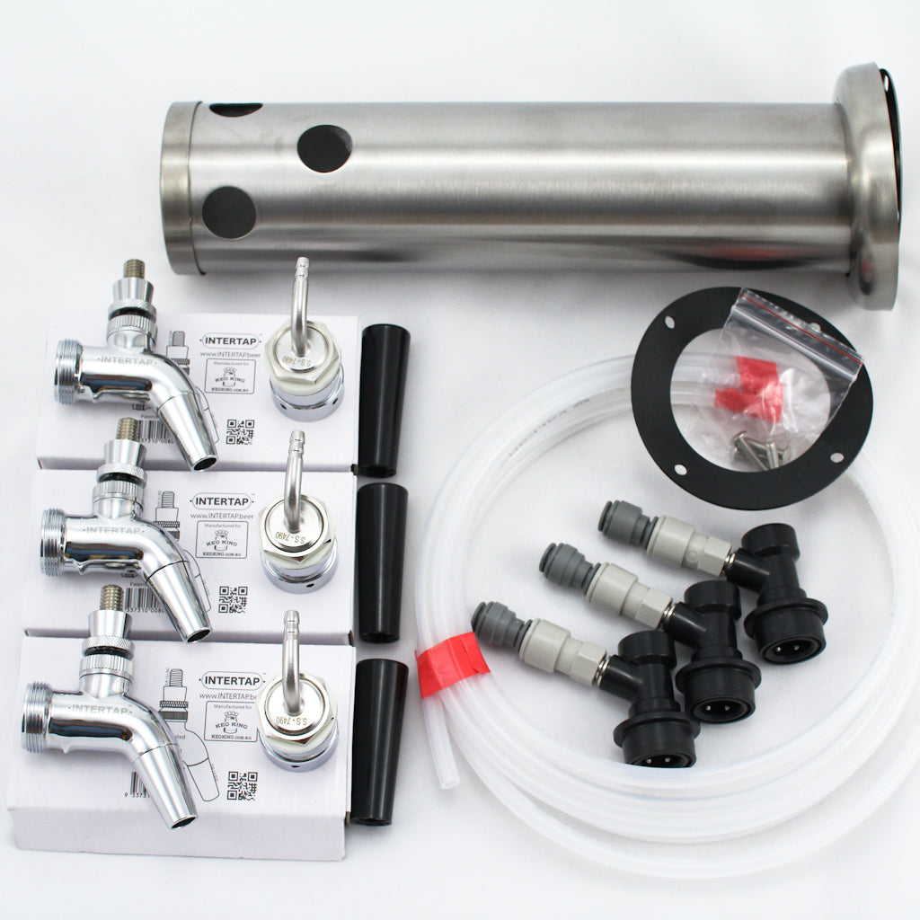 Includes everything you will need to to dispense 3 kegs of beer in a kegerator (fridge) or keezer (freezer).