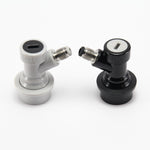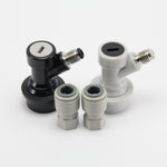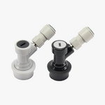 Kegland branded beer out and gas in ball lock disconnects with MFL fitting. John guest fittings can be screwed onto the MFL fitting to enable push fit connections with your beer line / gas line. This is easy to use and secure.