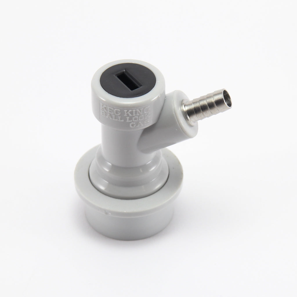 Keg king branded gas in ball lock disconnect with barb fitting. Barb will fit standard 3/8 OD line (1/4 ID)