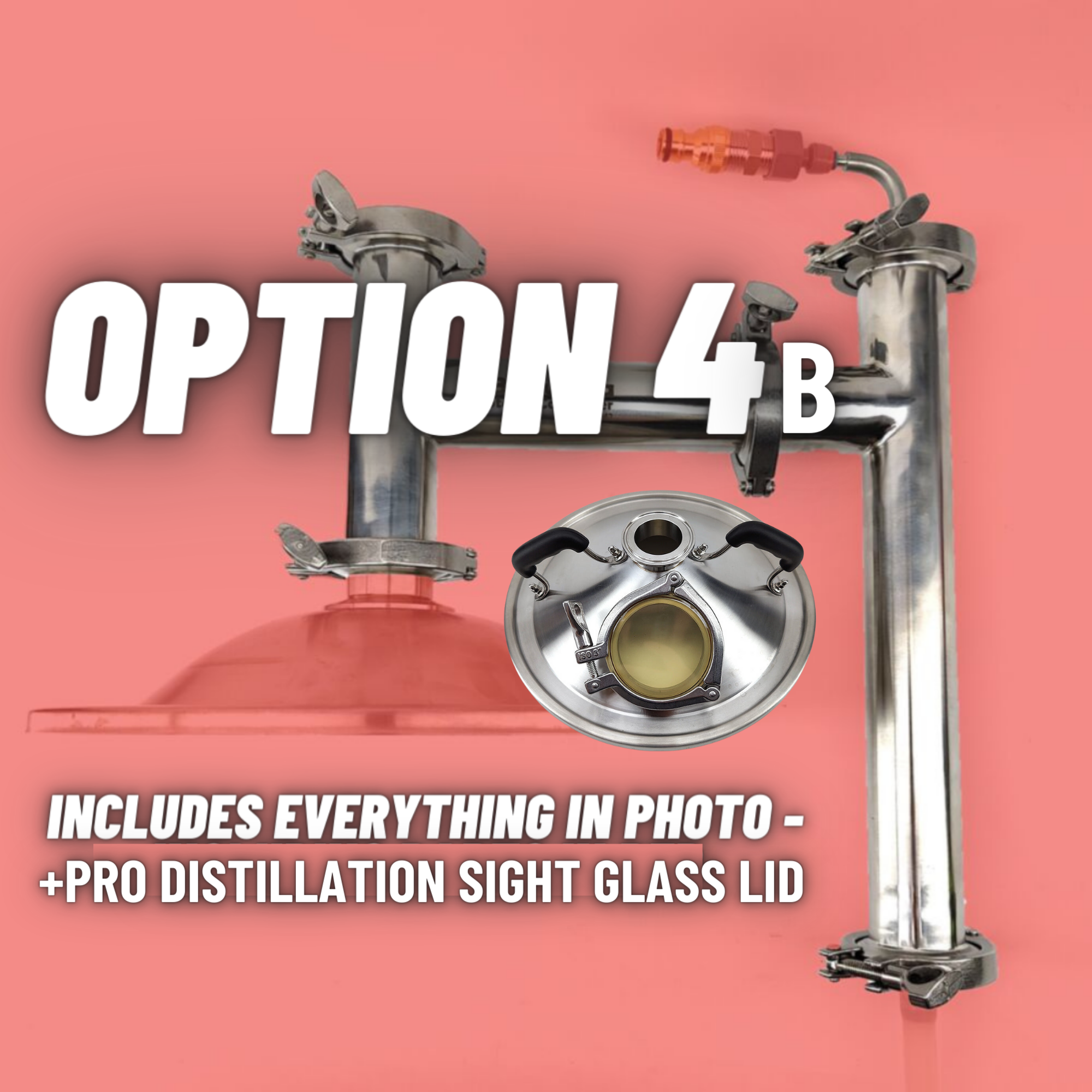 Option 4B - As option 2 but with a pro distillation sight glass 2" triclamp lid instead of the standard stainless lid and triclamp bulkhead.