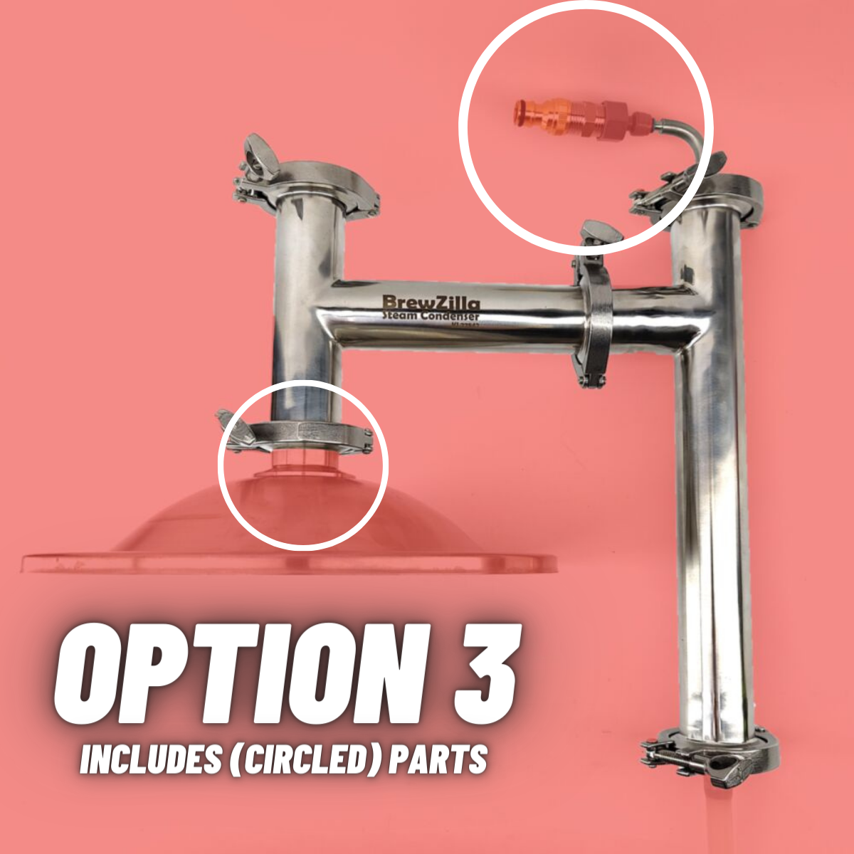 There are a number of options to help you easily choose the best kit for you. If you have a 35L Brewzilla (any generation) or Digiboil 35L option 4 will give you everything you need to condense your steam. If you already have some bits then the other options may be better for you.