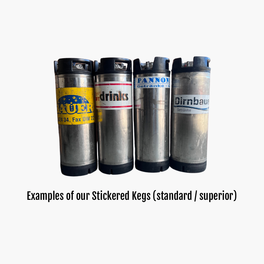 - Most kegs will have some stickers on (see description of stickered kegs).